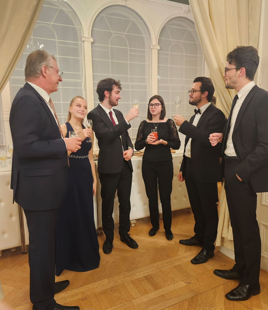 For the first London concert, at The Warburg Institute on 18th November, each of the trios performed a Mozart Piano Trio. There was also a talk about the links between the trios, Vienna and London. For the second concert, at the Austrian Embassy on 20th November, the musicians performed music by Korngold, Bridge and Brahms. Both London events ended with a reception, during which audience members met and talked with the young performers.
