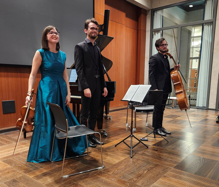 The Society’s 2025 Chamber Music Exchange project took place in November, when a piano trio (piano, violin, ‘cello) from the Universität Mozarteum in Salzburg (Trio Rupnik) met and made music with a piano trio from the Royal College of Music, London (Rossetti Trio).